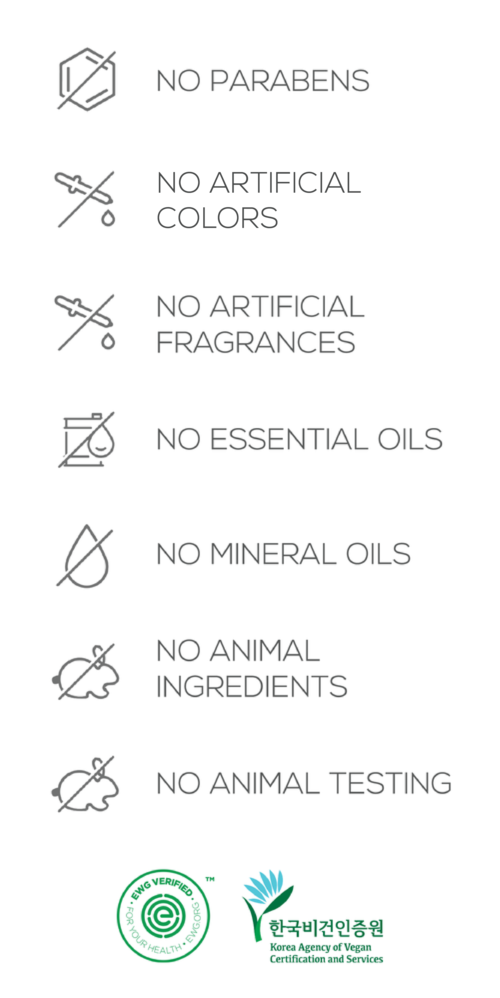 Thành phần không chứa paraben, chất tạo màu, hương liệu, tinh dầu, dầu khoáng, thành phần động vật, không thử nghiệm trên động vật (Nguồn: AXIS-Y)